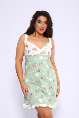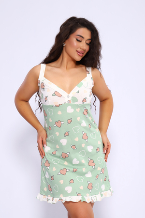 Сорочка на широких бретелях полуприлегающего силуэта с кокетливыми рюшами по низу изделия.