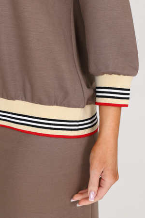 Изящный комплект, состоящий из туники и прямой юбки, изготовлен из эксклюзивной ткани академик, гарантируя не только превосходный комфорт, но и долговечность. Одна из ключевых особенностей этого костюма – изящный рукав, украшенный очаровательной манжетой из отделочной ленты, которая привносит особую изюминку и подчеркивает безупречный стиль. Низ туники также декорирован элегантной отделочной лентой, создавая гармоничное сочетание элементов и делая костюм идеальным выбором для важных мероприятий или деловых встреч. Прямая юбка, являющаяся неотъемлемой частью этого костюма, привносит современный шарм и идеально сидит на фигуре, подчеркивая ее достоинства и придавая образу изысканности. Размерный ряд от 48 до 58 позволяет каждой женщине найти идеальную посадку, соответствующую ее фигуре.