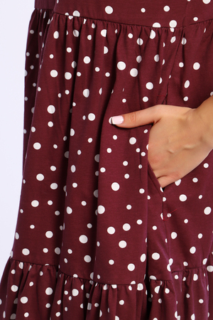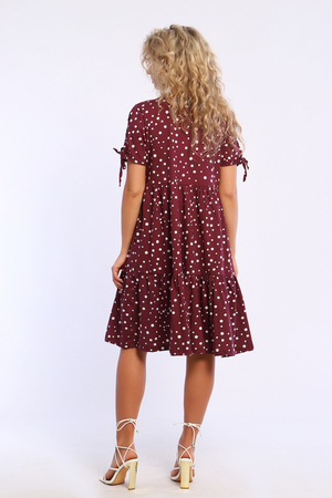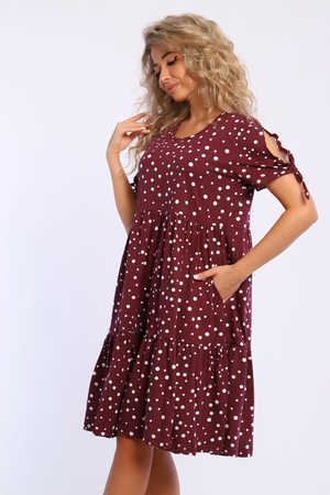 Платье с двухъярусной юбкой на сборке. Рукава с разрезами, на завязках. Карманы в боковых швах.