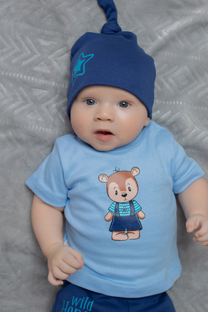 Забавная модель с узелком на макушке дополнена регулируемым отворотом. Стильный принт, нанесённый методом шелкографии на ткани. Идеально подойдет для ежедневного гардероба малышей, на выписку, в роддом, на прогулку.