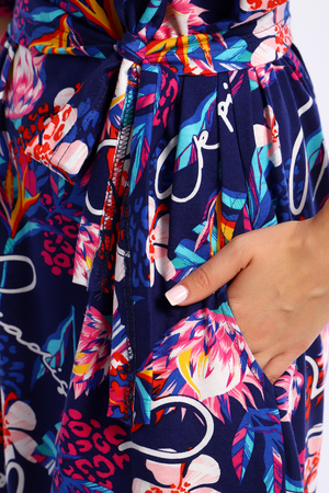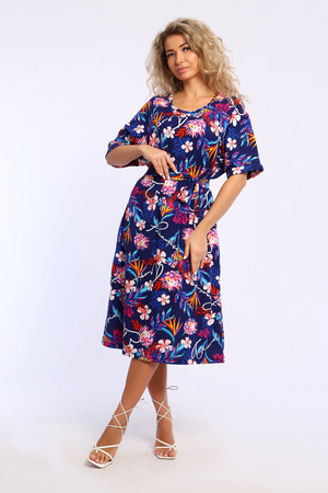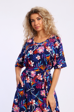 Платье свободного кроя с короткими цельнокроеным рукавами на манжетах. В боковых швах удобные карманы.