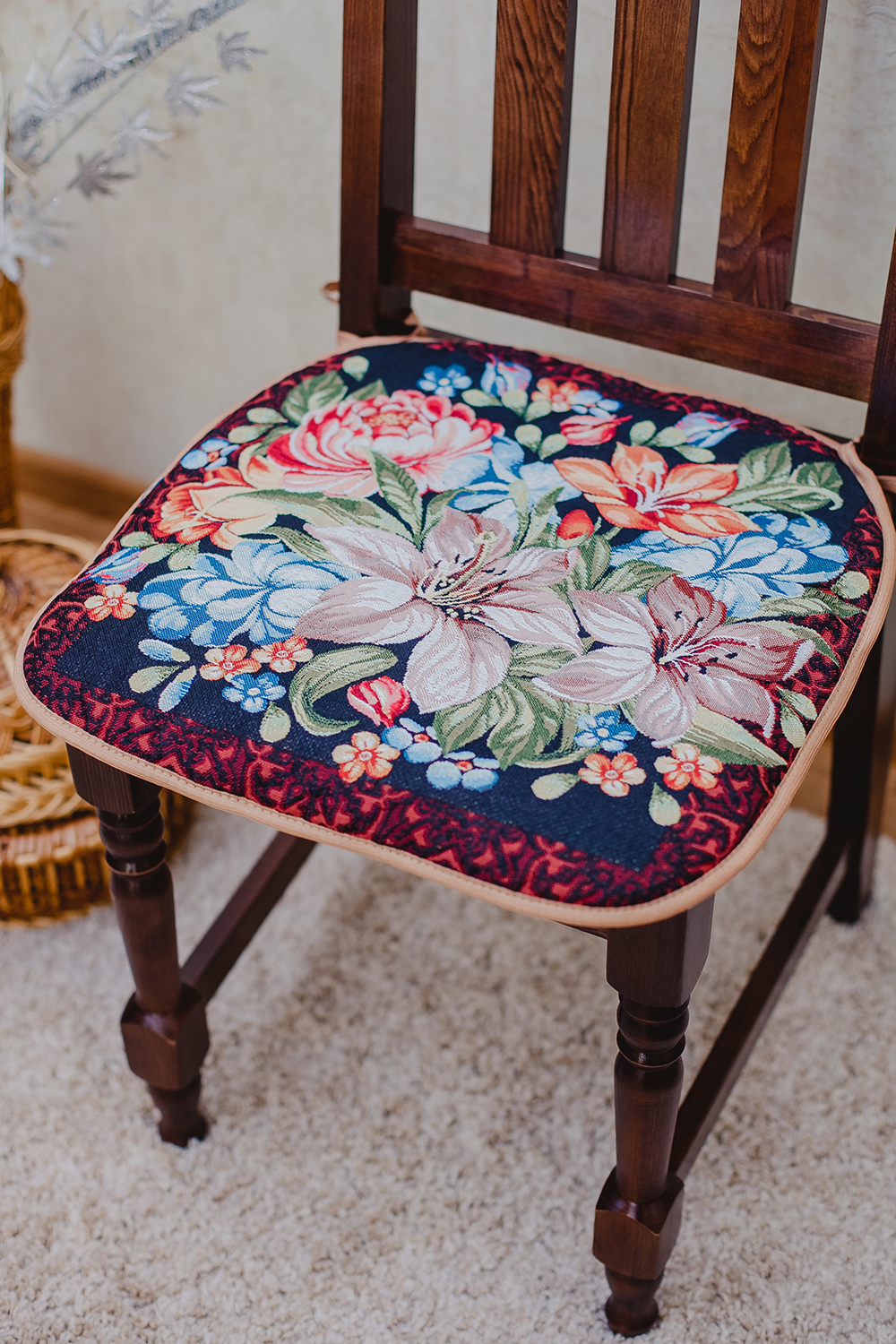 Представляем вам удобную и стильную сидушку на стул, которая станет отличным дополнением к интерьеру и принесет радость вашим близким. Эта сидушка имеет размер 43х43 см, что делает ее универсальной и подходящей для большинства стульев. Сидушка выполнена из высококачественного гобелена - материала, характеризующегося прочностью и износостойкостью. Благодаря своему составу из 50% хлопка и 50% полиэстера, она легко моется и сохраняет свою форму и цвет даже после многократной стирки. Эта сидушка оснащена удобными завязками и резинками, которые позволяют надежно закрепить ее на стуле. Это не только обеспечивает дополнительный комфорт при сидении, но и предотвращает скольжение сидушки. Внутри сидушки используется синтепон - легкий и мягкий материал, который обеспечивает комфортное сидение. Благодаря этому наполнителю сидушка не деформируется со временем и сохраняет свою форму долгие годы. Эта уютная сидушка на стул станет отличным подарком на новоселье, день рождения, 8 марта или любой другой праздник. Проявите заботу и внимание к вашим близким, подарив им нечто столь практичное и стильное. Не упустите шанс порадовать своих родных или друзей функциональным и красивым подарком. Сидушка на стул из гобелена сделает их обстановку более уютной и комфортной, а ваши близкие будут вспоминать вас с теплотой, каждый раз садясь на стул.