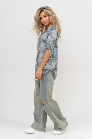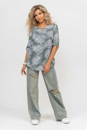 Женская туника свободного силуэта в стиле oversize выполнена из 100% хлопчатобумажного полотна. Этот стиль подходит для любой женщины, ведь он может скрыть все недостатки фигуры и подчеркнуть её достоинства. Округлая горловина с треугольным вырезом, паты на рукавах и по низу изделия делают тунику удобной и привлекательной. Современная туника - это почти неотъемлемая часть гардероба любой женщины. При бережном уходе  прослужит вам долгое время. Туника будет любимой домашней одеждой. Тунику летнюю можно взять с собой в роддом, в поездку, или на отдых в санаторий. Блузка такого плана будет отличным подарком для мамы, бабушки, сестры, подруги и любимой девушки. А подарить такой сюрприз можно на любой праздник, день рождения или юбилей, 8 марта, новый год или рождество. Туника удлиненная женская будет хорошо смотреться как на невысоких, так и на высоких. Блузка с вырезом идеальная вещь для похода на работу и дачу, которая сделает Вас неотразимой в любой ситуации.