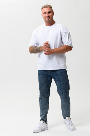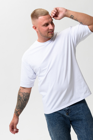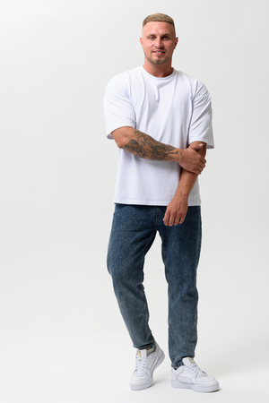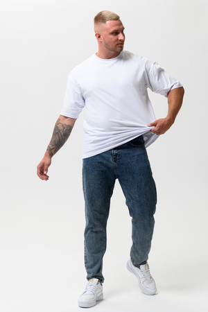 ХИТ сезона весна-лето! Стильная и модная футболка со спущенными плечом для мужчин создана, чтобы вписаться в дух времени. Она представляет собой оверсайз-модель со спущенными рукавами, которые придают ей особый шарм и оригинальность. Футболка подходит как для дома и отдыха, так и для активных тренировок. Высокая плотность 200гр/куб.м., материал кулирка с лайкрой. Широкий размерный ряд до 66 размера.