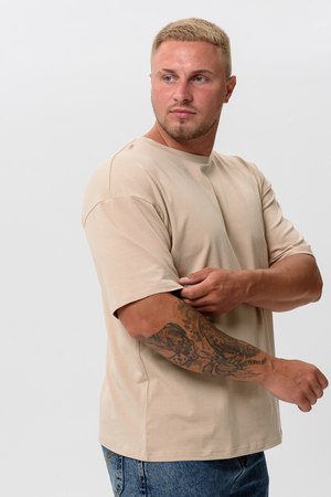 ХИТ сезона весна-лето! Стильная и модная футболка со спущенными плечом для мужчин создана, чтобы вписаться в дух времени. Она представляет собой оверсайз-модель со спущенными рукавами, которые придают ей особый шарм и оригинальность. Футболка подходит как для дома и отдыха, так и для активных тренировок. Высокая плотность 200гр/куб.м., материал кулирка с лайкрой. Широкий размерный ряд до 66 размера.
