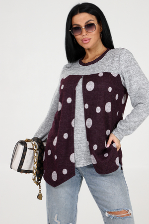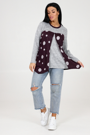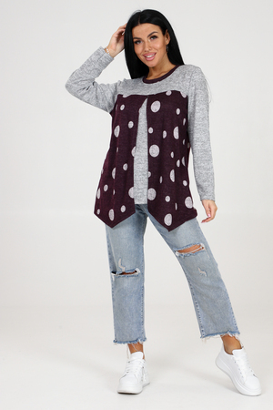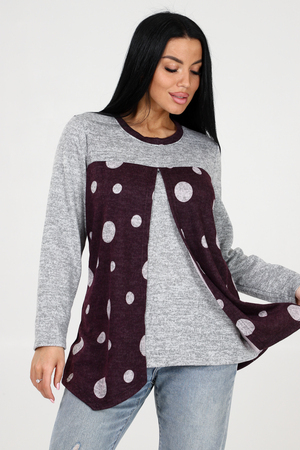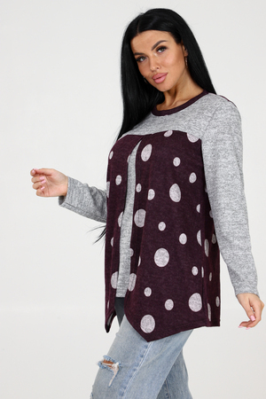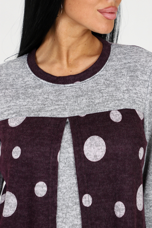 Оригинальная теплая туника в горох 2 в 1 с однотонной вставкой – идеальный выбор для стильных девушек, которые ценят комфорт и уникальность. Эта модель обладает всеми необходимыми характеристиками, чтобы сделать ваш образ неповторимым. Главной особенностью этой туники является ее многофункциональность. Благодаря инновационной конструкции, она может быть надета двумя разными способами – как туника с горошком на передней части, или как однотонная туника с горохом на задней части. Вы сможете варьировать свой образ в зависимости от настроения и события. Теплая ткань обеспечивает максимальный комфорт в холодные дни, а длинные рукава добавляют дополнительного уюта. Необычный округлый вырез, отделанный стильным кантом, делает эту тунику еще более привлекательной и эксклюзивной.
