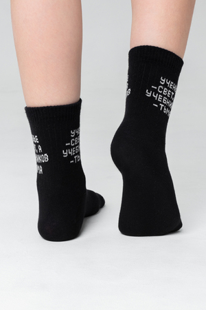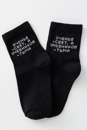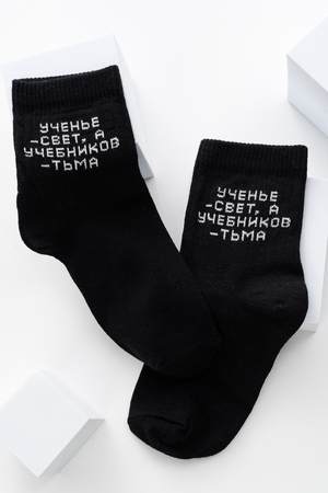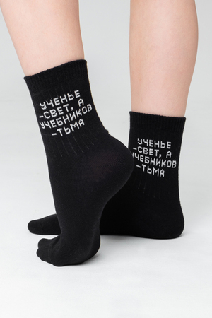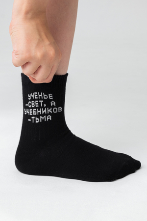 Подростковые носочки с надписью "Ученье свет - а учебников тьма", связанные из натурального хлопка. Креативная модель мягко облегает ногу, не доставляя дискомфорт в течение всего дня. Носки сочетаются с разной обувью, подходят как мальчикам, так и девочкам.
