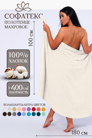 Полотенце банное махровое Софатекс 100х180 для ванны и душа