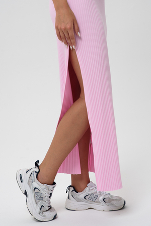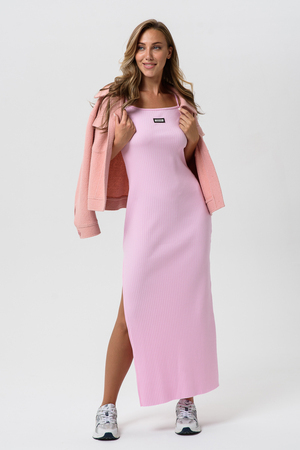 Длинное спортивное платье приталенного силуэта на тонких брительках.Мягкая ткань в рубчик обеспечивает комфорт.Идиальный вариант на каждый день или в отпуск,на море или путешествий и отдыха.Длинное сексуальное платье с разрезом идеально сочетается с любой спортивной обувью будь,то кросовки,кеды,сандали.