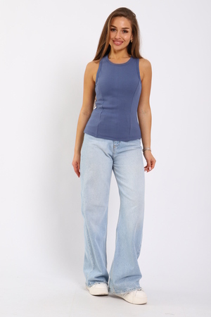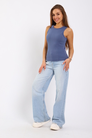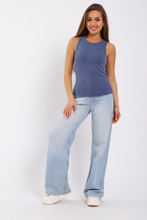 Майка женская из кашкорсе с отрезными бочками. Пройма и горловина майки обработаны окантовкой, низ подогнут на плоскошовной машине. Идеальный вариант для повседневной носки.