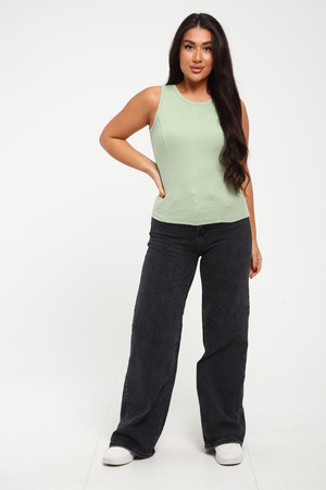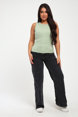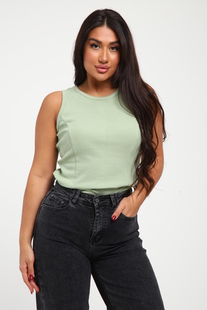 Майка женская из кашкорсе с отрезными бочками. Пройма и горловина майки обработаны окантовкой, низ подогнут на плоскошовной машине. Идеальный вариант для повседневной носки.