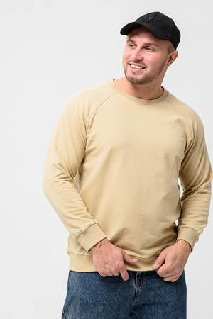 Свитшот мужской легкий однотонный из тонкого футера 2х нитки. Изготовлен из качественного футера двунитки без начеса. Натуральный состав ткани - 95% турецкий хлопок и 5% лайкра (эластан). Круглый вырез не растягивается и не деформируется. Сшита из мягкой и не толстой ткани без начеса, а значит в нем будет не жарко и не холодно в помещении. Базовая кофта для образов в стиле кэжуал (casual). Подойдет для работы в офисе и свидания в кафе, для автомобиля, прогулки, спортивного лука на осень, весну и лето. Толстовка обеспечивает комфорт и вентиляцию, не сковывает движения. Длина рукава измеряется от горловины. Обращаем внимание, что свитшот подходит на рост от 158 до 176см.