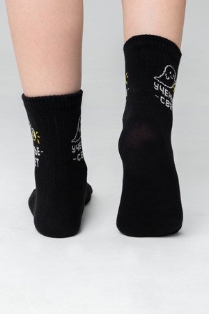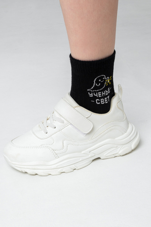 Подростковые носочки с реалистичными надписями, связанные из натурального хлопка. Креативная модель мягко облегает ногу, не доставляя дискомфорт в течение всего дня. Носки сочетаются с разной обувью, подходят как мальчикам, так и девочкам.