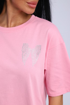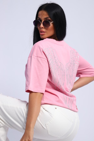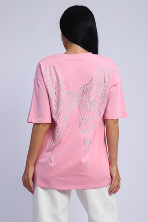 Модная и нарядная футболка со стразами в виде крыльев. Плотная и приятная ткань. Стразы расположены спереди и на спине. Очень красиво переливаются на солнце. Футболка сделает образ изысканным и уникальным. Благодаря уникальному дизайну будет незаменимым элементом вашего гардероба. Подойдет на день рождение, для офиса, как вечерняя, праздничная и повседневная одежда. Рукав спущенный и не сковывает движения. Длина рукава указана от плечевого шва. Перед стиркой вывернуть наизнанку. Производство Китай.
