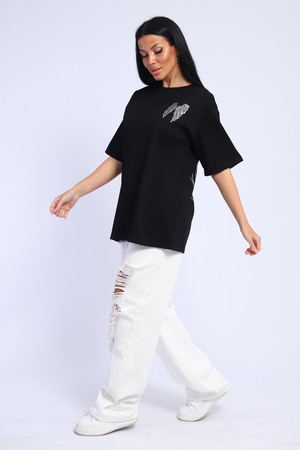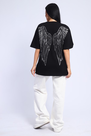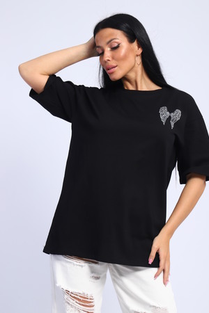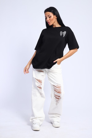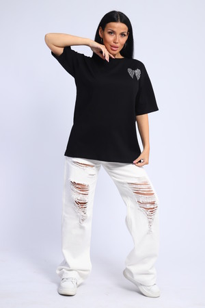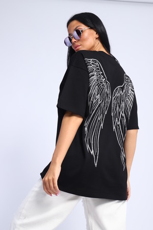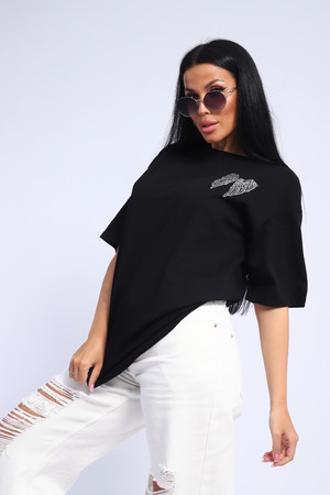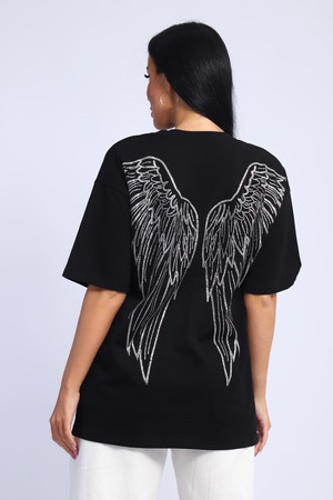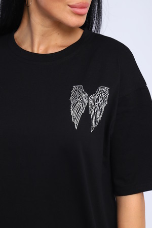 Модная и нарядная футболка со стразами в виде крыльев. Плотная и приятная ткань. Стразы расположены спереди и на спине. Очень красиво переливаются на солнце. Футболка сделает образ изысканным и уникальным. Благодаря уникальному дизайну будет незаменимым элементом вашего гардероба. Подойдет на день рождение, для офиса, как вечерняя, праздничная и повседневная одежда. Рукав спущенный и не сковывает движения. Длина рукава указана от плечевого шва. Перед стиркой вывернуть наизнанку. Производство Китай.