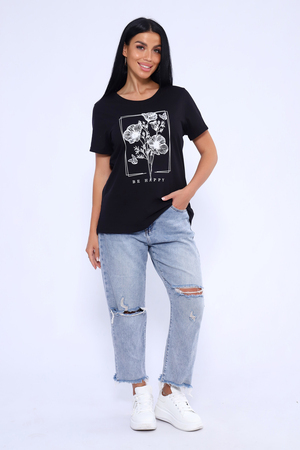 Прекрасный вариант для летнего отдыха и комфортного "лука" на каждый день! Спокойные, "летние" цвета. Футболка изготовлена из мягкого 100% хлопка. Фасон приталенный. Горловина обработана обтачкой с последующей отстрочкой. Рукава и низ изделия в подгибку.