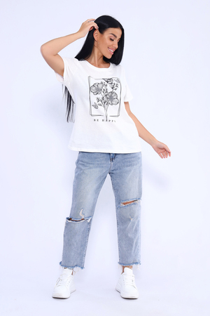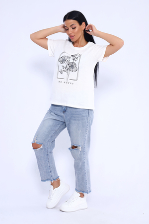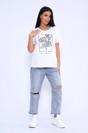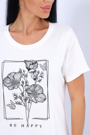 Прекрасный вариант для летнего отдыха и комфортного "лука" на каждый день! Спокойные, "летние" цвета. Футболка изготовлена из мягкого 100% хлопка. Фасон приталенный. Горловина обработана обтачкой с последующей отстрочкой. Рукава и низ изделия в подгибку.