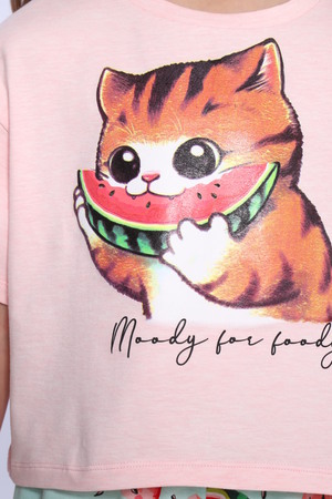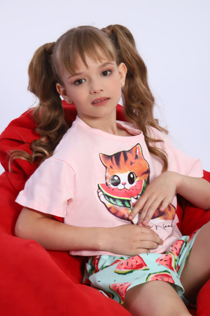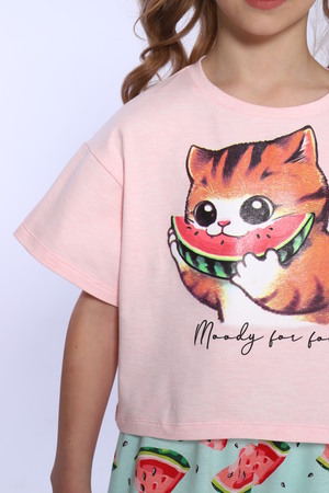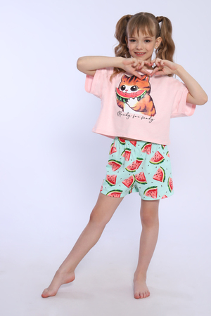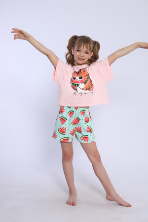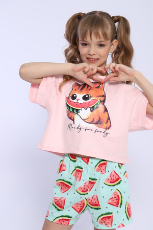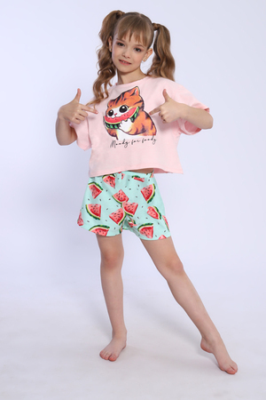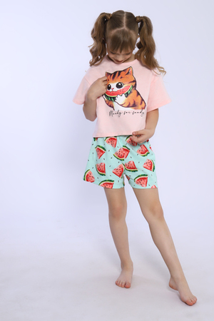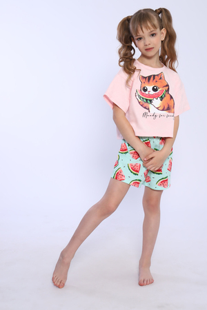 Пижама с шортами для девочки Кот-арбуз арт ПД-019-067