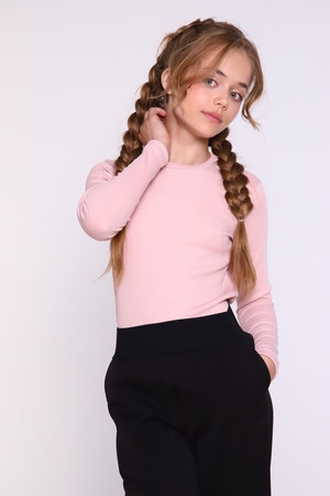 Джемпер для девочки нежной расцветки из полотна в рубчик "лапша" - отличный вариант как для школьных будней, так и для внешкольных мероприятий. Мягкое трикотажное изделие не только невероятно комфортно в носке, но еще и не деформируется при стирке. Водолазка нежных цветов гармонично будут сочетаться с любыми предметами гардероба вашей принцессы.