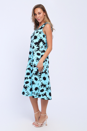 Сарафан полуприлегающего силуэта. Удобные карманы в боковых швах. Комфортен для повседневной носки.