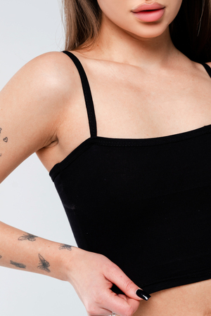Модель: Кроп F-топ-бандо-3 спортивный домашний на тонких бретельках