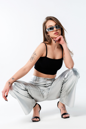 Женский топ Кроп F-топ-бандо-3 спортивный домашний на тонких бретельках