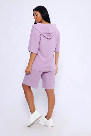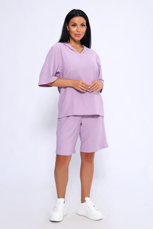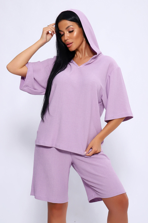 Женский летний костюм из интересного легкого, жатого материла в пастельных тонах. Ткань износостойкая, с приятными тактильными свойствами. Комплект состоит из кофты свободного кроя с капюшоном и шорт на эластичной резинке шириной 3 см., в боковых швах расположены карманы, длина шорт чуть выше колена. Комплект подходит как для отдыха дома, так и более активного времяпрепровождения как на природе, так и в городе. В нем будет очень удобно находиться и выполнять привычные для вас действия. По спинке кофты может быть шов. На фото модель представлена в 48 размере.
