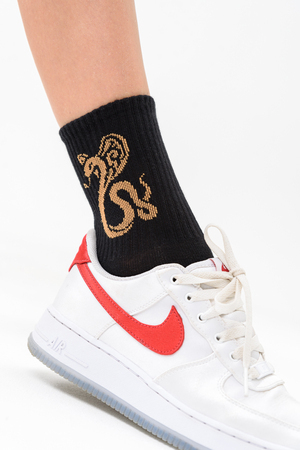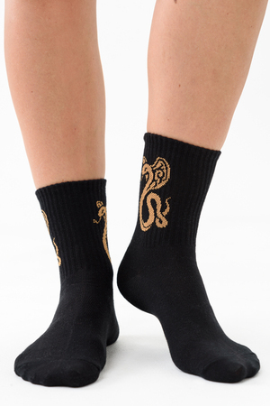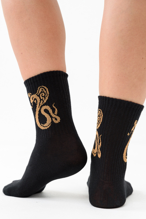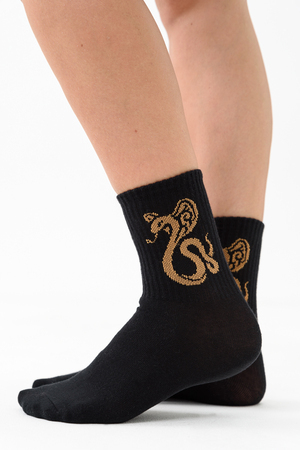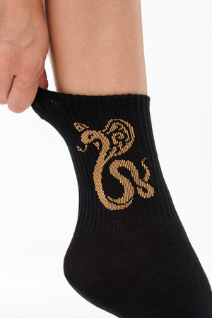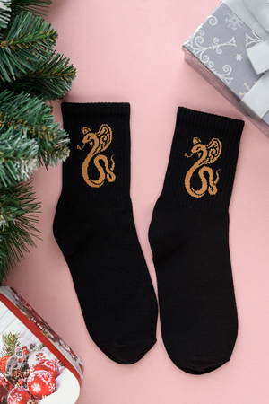 Оригинальные женские новогодние носки. В комплекте 1 пара. На основной части носка изображение символа будущего года Змеи.