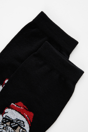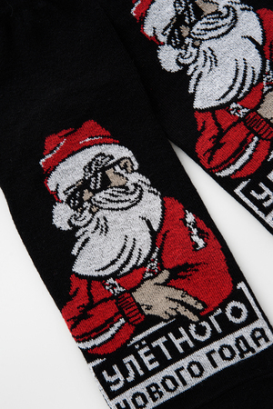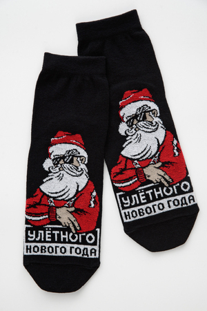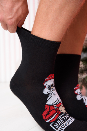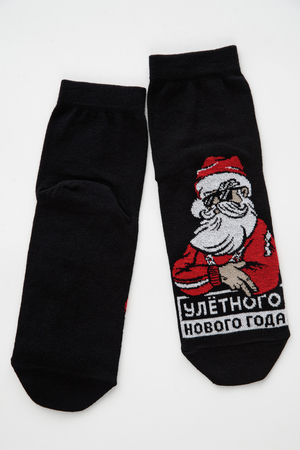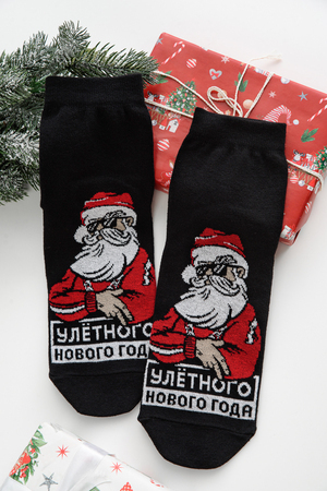 Оригинальные мужские новогодние носки. В комплекте 1 пара. На основной части носка изображение Санта Клауса и надпись "Улетного Нового Года".