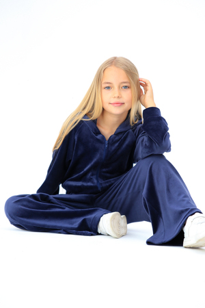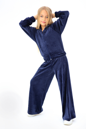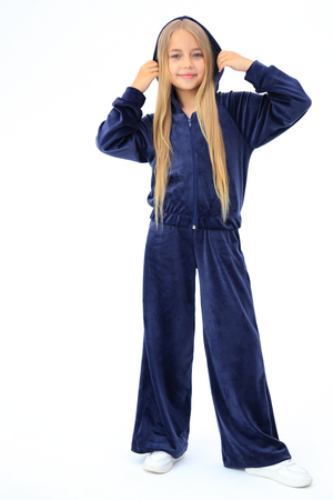 Мягкий велюровый костюм на молнии и с капюшоном, что очень удобно. Подойдет и для прогулок, а также как домашний костюм.