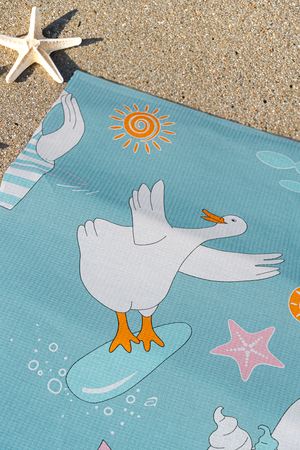 Полотенце пляжное Морячок - отличное решение для отпуска или отдыха на природе. Вафельное полотенце так же подойдет в качестве накидки на шезлонг или коврика для пикника. Большое полотенце имеет тонкую вафельную структуру, благодаря чему изделие очень компактно и удобно. Вафельное полотно отлично впитывает влагу, быстро сохнет и не требует особого ухода. Для удобства к полотенцу пришита петелька.