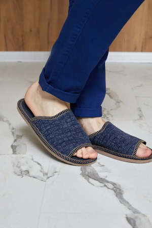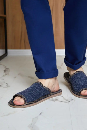 Легкие домашние тапочки мужские от бренда "Лепилов" прекрасно подойдут для ежедневного ношения дома и на даче в любое время года. Стильную модель  можно предложить своим гостям, или взять с собой на отдых, в дорогу. А как приятно самому после тяжелого рабочего дня переобуться в тапочки с комфортной посадкой по ноге! Тапочки с открытым мыском не натирают ноги. Верхняя часть домашних тапок выполнена из качественного текстиля, который легко пропускает воздух. В таких тапочках нога не потеет и не скользит. Они спасают от холодного и мокрого пола и подходят на любую полноту стопы. Стелька выполнена из качественной рогожки, благодаря которой их очень комфортно носить как с носком, так и на босу ногу. Подошва изготовлена из ЭВА, это легкий, упругий, эластичный и износостойкий материал. Все швы качественно обработаны производителем. Классическая модель подойдет для носки в любое время года: в осенний, весенний и летний, в зимний период, будет удобна в качестве домашних комнатных, дачных или рабочих. Широкий размерный ряд позволяет найти свою пару удобной обуви каждому мужчине.