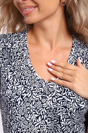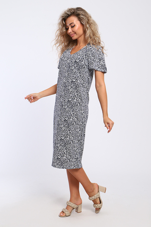 Платье полуприлегающего силуэта с V - образным вырезом горловины и сборкой над грудью. Рукава короткие со сборкой по окату.