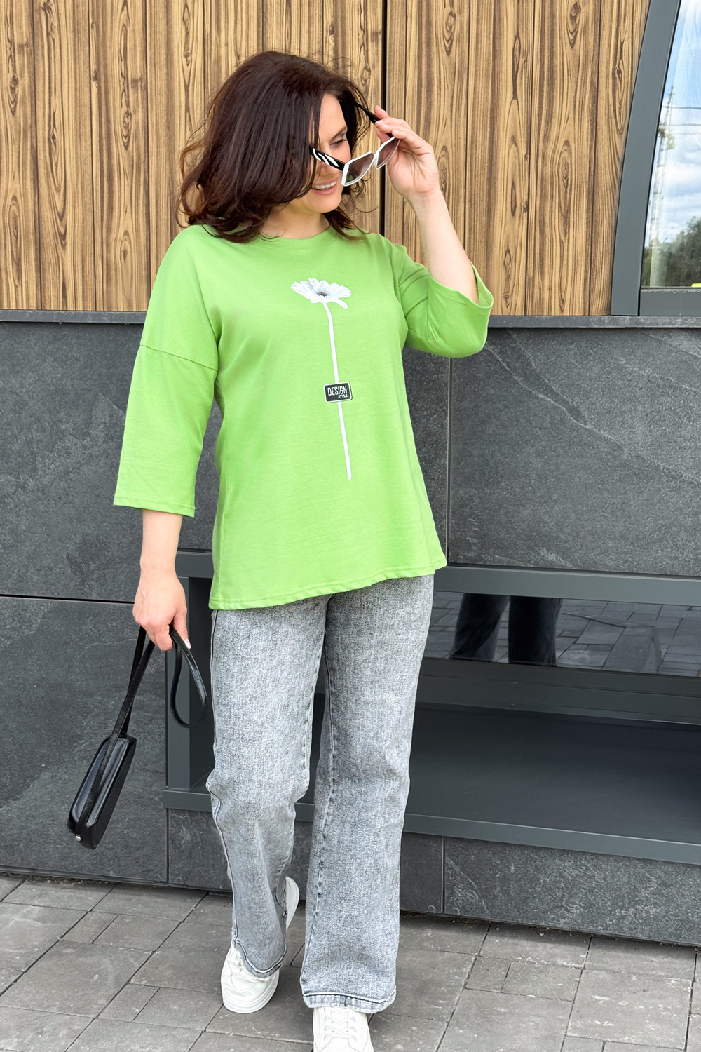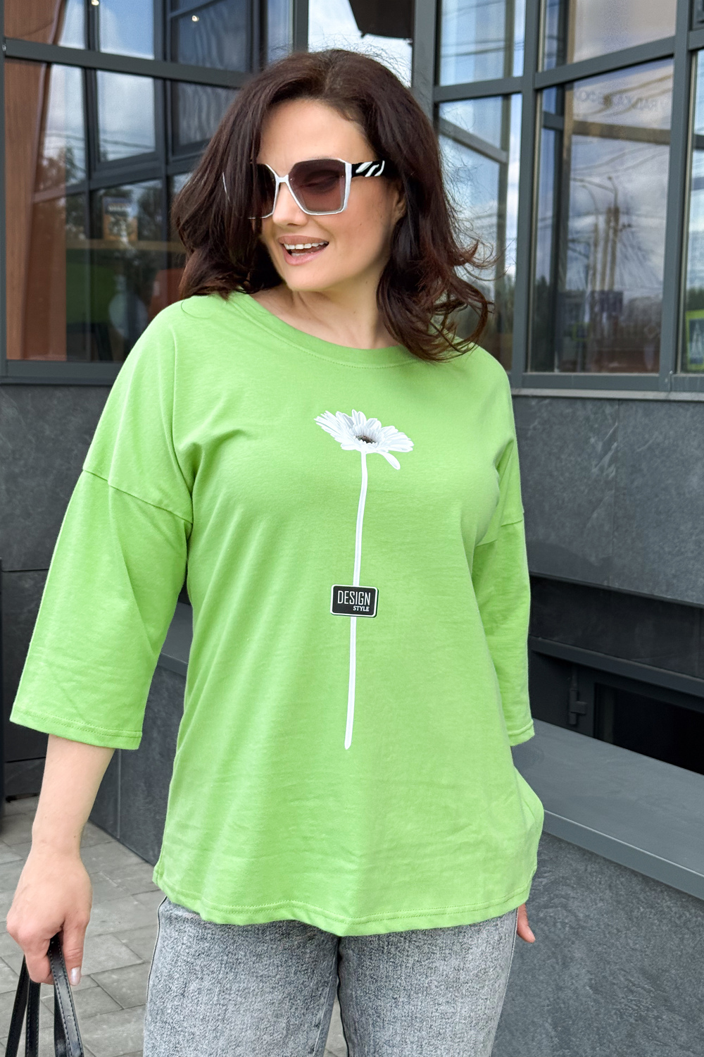 Женская футболка длиной до середины бедра комфортная посадка круглый вырез горловины. Модель представлена в широкой цветовой гамме, Классическая футболка средней длинны прекрасно гармонирует со многими вещами гардероба, Ткань для этой модели выполнена из хлопка высшего качества. Размер на модели 50, Параметры 92-66-97,5; рост 165см.