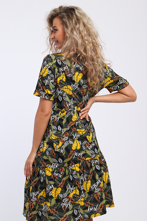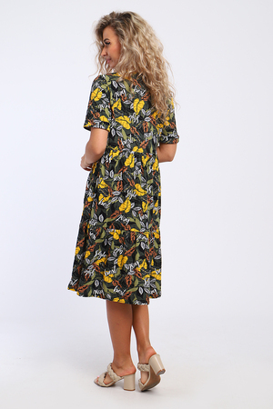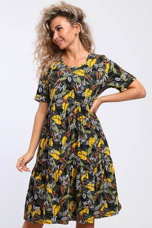 Свободное летнее платье с двухъярусной юбкой на сборке, короткими рукавами с отворотными манжетами и карманами в боковых швах. Необходимый элемент гардероба для легких образов.