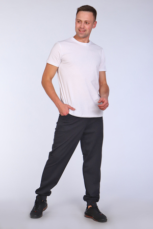 Базовые мужские брюки из футера 2-х нитки - это идеальный вариант для занятия спортом, отдыха, работы, учёбы и повседневной носки. Комфорт при носке придаёт эластичный пояс выполненный на специализированной машине, удобные вместительные боковые карманы и низ брюк, обработанные рибаной. А также качество материала: мягкость и эластичность, устойчивость к растяжке в области коленей, не мнётся, приятен к телу и обладает хорошей износостойкостью. Брюки такого плана идеально сядут на любой тип фигуры и помогут создать по-настоящему модный образ.