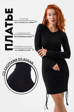 Платье женское обтягивающее из мягкого эластичного трикотажного материала идеально подчеркнет фигуру и станет изюминкой вашего гардероба. Фасон в обтяжку из хлопка с завязками можно регулировать по длине, благодаря этому хорошо сядет на невысоких, среднего роста и высоких. Платье мини визуально удлиняет ноги и придает образу сексуальность. Это отличный вариант для девушек, которые хотят сделать акцент на женских формах. При этом простой дизайн платья делает его достаточно универсальным, чтобы подходить практически любому типу фигуры.