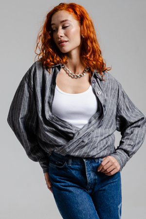эластичный трикотажный материал в широкую продольную полоску, один из классических видов трикотажа. Благодаря своей мягкости и эластичности материал очень комфортен