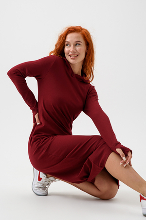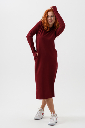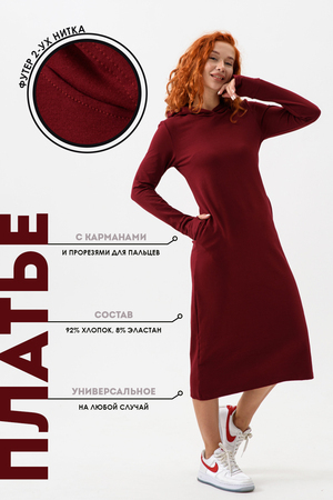 Покупатель на Ozon02.09.2025 в 20:44Видео получилось не очень, но я хотела показать, что платье хорошо сидит даже с проблемной фигурой. На рост 176 самое то для меня, ОГ-127;ОБ-130 взяла по размерной сетке что прилагается 58 размер, рукав длинный, ткань чуть потолще лонгсливов, при 15 градусах в МО мне было прохладно, но накинуть жилетку и прогулка будет комфортной. При ходьбе по ногам не поднимается, цвет бесподобный как и писали в комментариях, насыщенный винный, после стирки будем смотреть, лично я брала для прогулок. С карманами буду думать, они оттопыриваются, проглаживала и