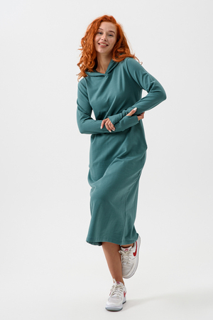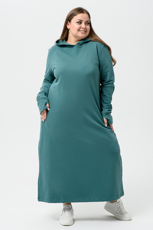 Женщины, которые хотят выглядеть привлекательно и стильно обязательно оценят это теплое платье с капюшоном и длинным рукавом. Платье - толстовка женское имеет прямой крой макси длины, поэтому легко скрывает изъяны фигуры, подчёркивая плавные линии тела, фасон хорошо подходит для полных. Длина оптимальна для прохладной погоды. Футер с лайкрой без начеса хорошо тянется и отлично держит форму. Ткань платья приятна к телу и очень проста в уходе.