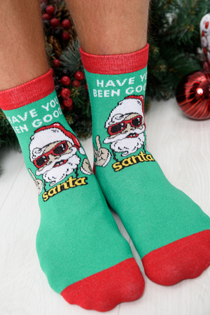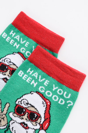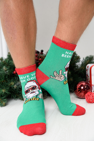 Оригинальные мужские новогодние носки. В комплекте 1 пара. На основной части носка изображение Санта Клауса и надпись "Have you been good?". Оригинальная расцветка делает носки отличный подарком на Новый год.