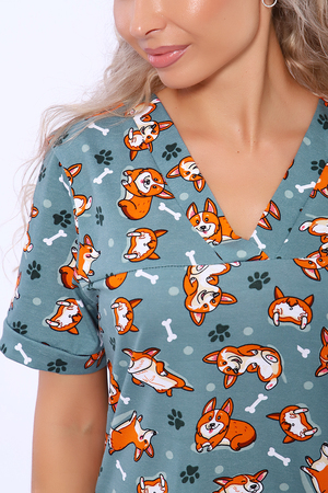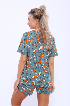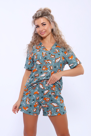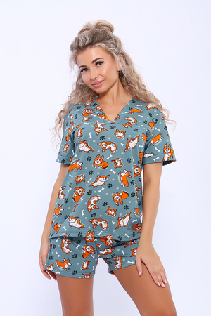 Пижама состоит из футболки и шорт. Футболка с короткими рукавами на манжетах и V - образным вырезом горловины.