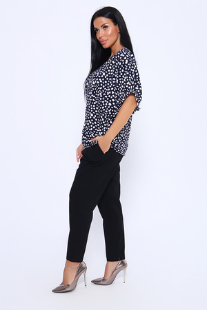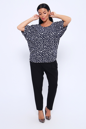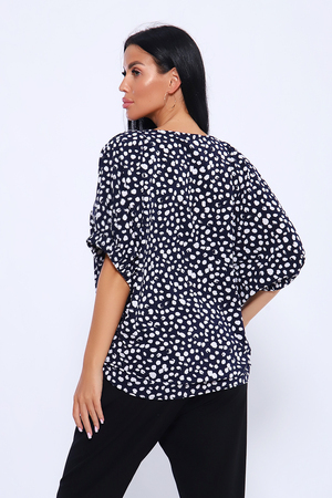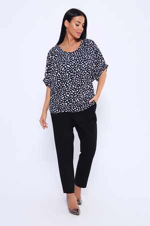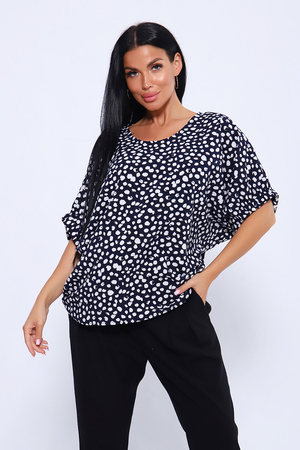 Просторная и удобная блузка из ткани индо. Свободный крой и рукав - летучая мышь, присобранный на резинку, делают эту модель актуальной для любой фигуры. Округлая горловина окантована хлопчатобумажной бейкой, длина рукава указана в замерах по плечу от горловины. Длина блузки чуть ниже линии бедра, по боковым швам низ изделия присборен. Легкая и не мнущаяся ткань индо обеспечивает удобство и комфорт при носке. Благодаря содержанию вискозы в составе ткани, блузка не электризуется и не липнет к телу. Базовые расцветки помогут создать комбинацию и с брюками, и с юбкой, на любой случай жизни.