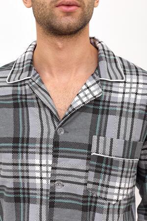 Мужская фланелевая пижама из 100% хлопка, приятна к телу и не сковывает движения. В комплекте рубашка на пуговицах и с удобными карманами на груди и по бокам, так же прямые свободные брюки на поясной резинке. Отличный комплект, который подойдёт каждому мужчине.