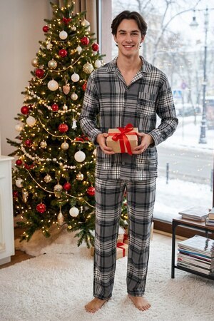 Мужская фланелевая пижама из 100% хлопка, приятна к телу и не сковывает движения. В комплекте рубашка на пуговицах и с удобными карманами на груди и по бокам, так же прямые свободные брюки на поясной резинке. Отличный комплект, который подойдёт каждому мужчине.