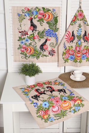 Набор из трех кухонных полотенец размером 48*60 см выполнен из хлопчатобумажного полотна - рогожка.