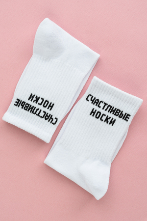 Комплект женских носков 2 пары. Широкая резинка. По верхней части носка надпись "Счастливые носки"
