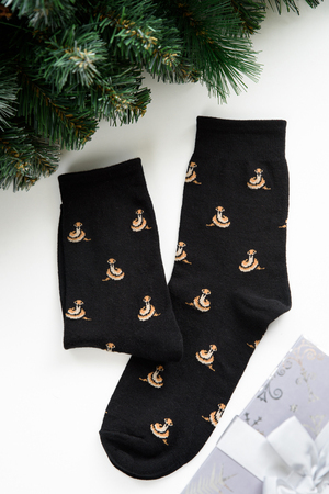 Комплект женских носков 1 пара. По все поверхности носка изображение змей - символа Нового 2025 года. Отличный подарок!