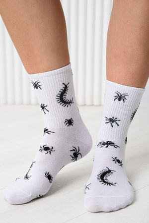 Комплект носков с резинкой по всей верхней части. По всему носку изображение насекомых.