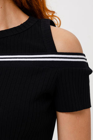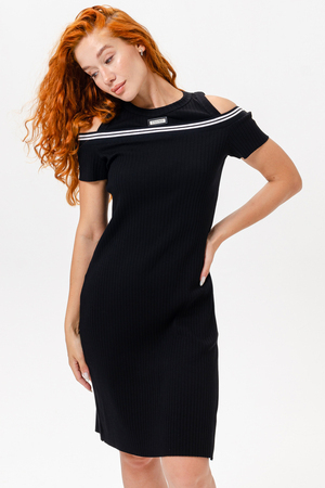 Женское платье из лапши полуприлегающего силуэта. Кокетливые вырезы для плеч делают платье особенным.